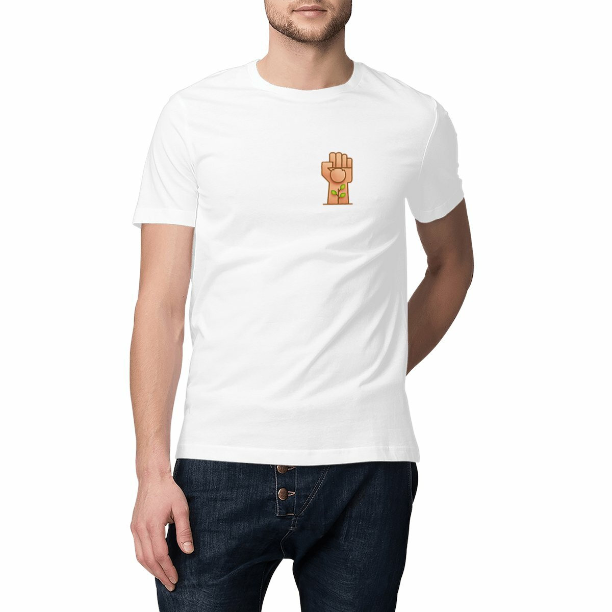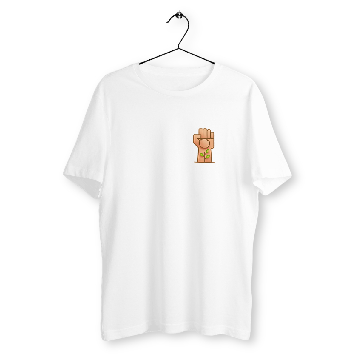 Son illustration représente un poing levé portant un noyau prêt à germer, accompagné d’une jeune pousse : une image simple et puissante, qui raconte l’histoire d’un mouvement basé sur l’entraide, la transmission et la renaissance.