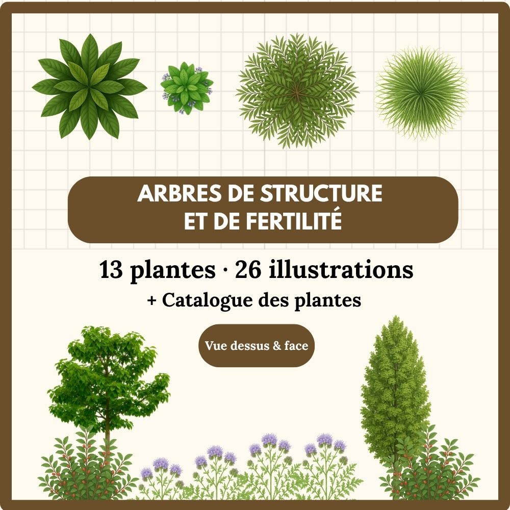 Arbres de structure et de fertilité 13 plantes (26 illustrations)