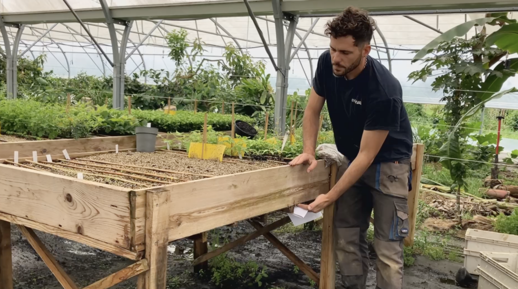 Au quotidien, il développe sa pépinière en extérieur et sous serre, avec aussi une serre tropicale dédiée à l’acclimatation de plantes rares. Sur les réseaux, il partage généreusement ses découvertes, ses essais, et ses retours de terrain sur les espèces méconnues.
