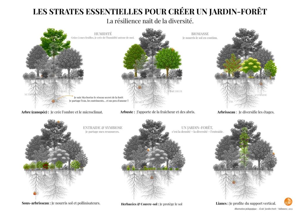 ✔ 16 cartes pour comprendre le Jardin-Forêt + Poster des 7 strates